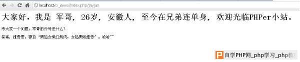 现在使用浏览器输入http://ci_demo/index.php/jayjun/index ,如果你做的没错,你应该看到页面输出This is a test!。 以上我们需要注意以下几点: a、类名必须以大写字母开头。以下才是有效的:
