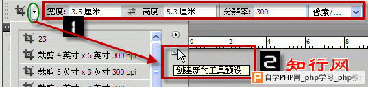 2. 选择裁剪工具旁边的下拉按钮,单击“创建新的工具预设”。