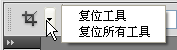 比如我们下次使用裁剪工具,不需要这些参数,用鼠标右键单击下拉按钮的地方,弹出一个快捷菜单,选择:复位工具或者复位所有工具。