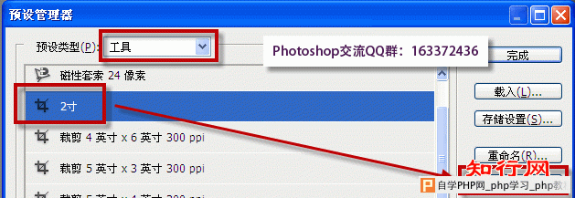 3.弹出“新建工具预设”,名称框,我们输入为预设取一个名字,比如:2寸,单击“确定”。