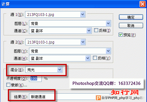 4、执行“图像\调整\计算”,生成Alpha1通道。(这一步的目的也是强调显示斑点)。