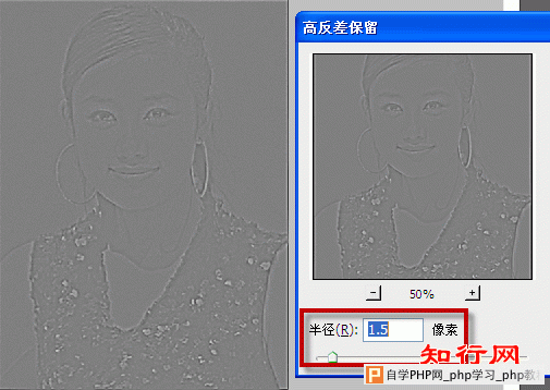 3.执行“滤镜——其它——高反差保留”,弹出“高反差保留”对话框,半径值输入1.5。