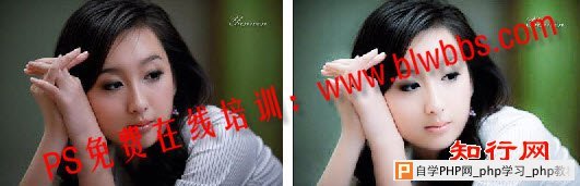 介绍完原理知识,下面我们以实例来学习ps模式强光的应用。左边是原图,右边是磨皮处理后,再应用强光混合模式之后的效果图。