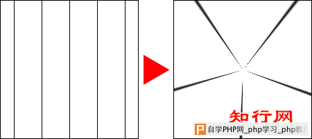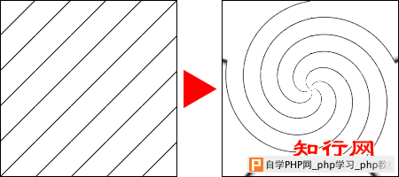 - 水平线转换成圆,垂直线转换成放射线,斜线转换成螺旋线;
