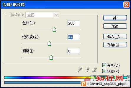 10、按住Ctrl键单击图层2的图层缩览图载入选区,单击“创建新的填充或调整图层”按钮,在弹出的下拉列表中选择“色相/饱和度”命令,设置弹出的对话框如图12所示,画面效果如图13所示。