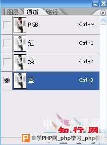 3:选择通道面版里的蓝色通道,CTRL+V粘贴。