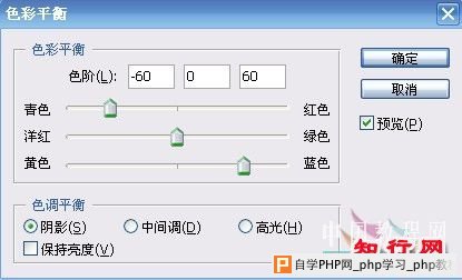 8:图象——调整——色彩平衡。注意:不保持亮度,选择“阴影”。
