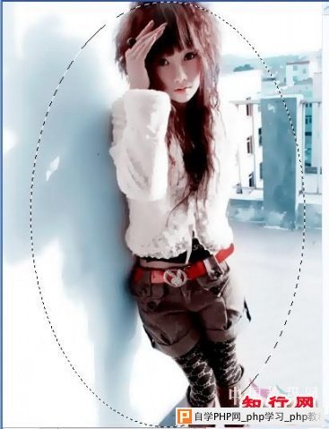 14:选择刚才新建的“图层 1”,用椭圆选区工具拉出个如图的椭圆选区。(选择——变换选区,可以调整选区)