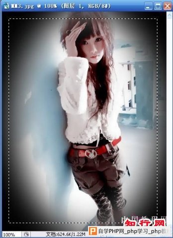 23:选择新建的“图层 1”(透明的),用各种画笔,前景色为白色,发挥各自的想象,在图片周围画出凌乱颓废的边框效果。