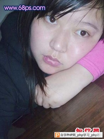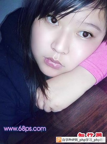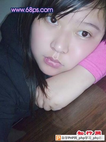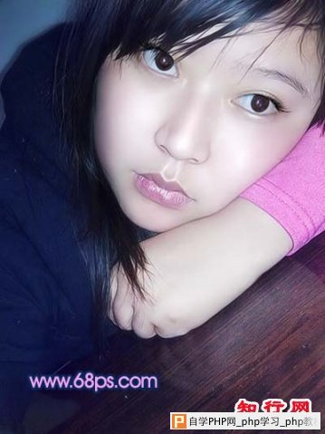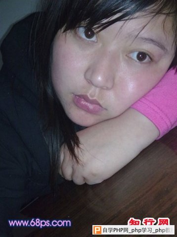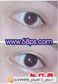 4、新眼睛部分的处理,选择涂抹工具,压力为:10%左右,先把眼睛周围有杂色的部分涂掉,然后用钢笔工具勾出眼白部分选区,把边缘部分用加深工具加深一点,取消选区后用加深/减淡工具处理双眼皮,恢复一下光泽,效果如图4。