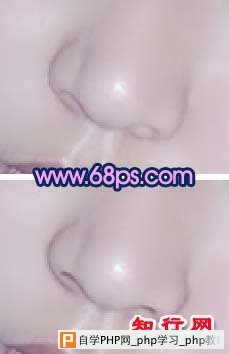 3、新建一个图层,盖印图层,这一步来处理鼻子部分,用钢笔工具把鼻子部分路径抠出来,转为选区后,按Ctrl + Shift + I反选,然后选择加深工具,曝光度为:10%,加深鼻子的轮廓,鼻孔部分也需要加深一点,效果如图3。