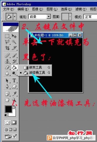 19、关闭背景图层前的眼睛=》选择“油漆桶工具”;