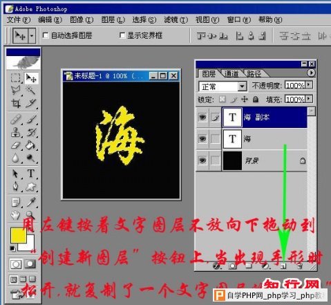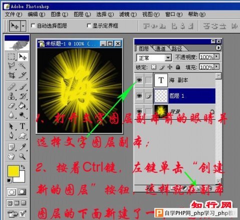 22、合并图层1和文字副本图层,到此为止,闪光字就基本做好了.