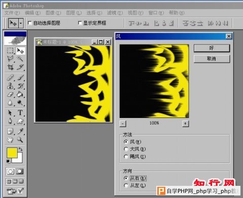 15、勾选“风”=》“从右”=》点“好”;(这样重复三次)