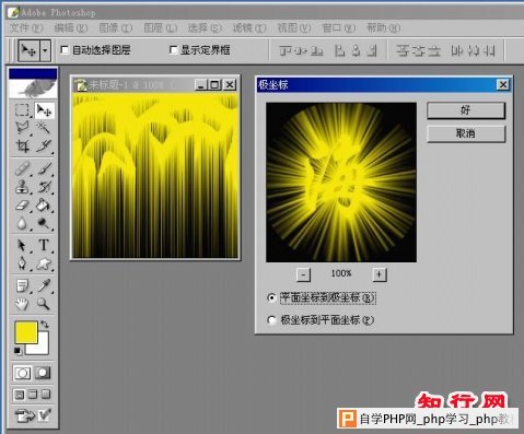 17、滤镜=》扭曲=》极坐标=》平面坐标到极坐标=》点“好”;