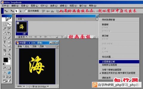 2、在动画面板的右上角点击三角按钮=》从图层建立帧;