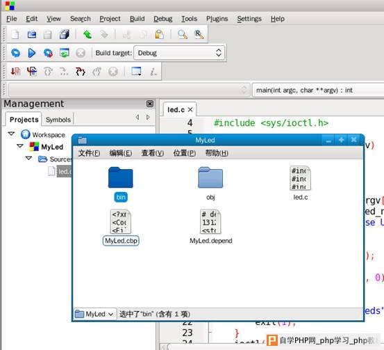 在/bin/Debug/下面有刚生成的应用程序MyLed