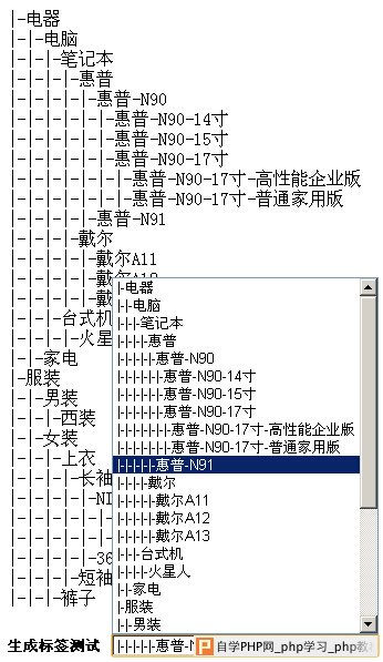 $tree->setNode("30","28","惠普-N90-17寸-普通家用版");