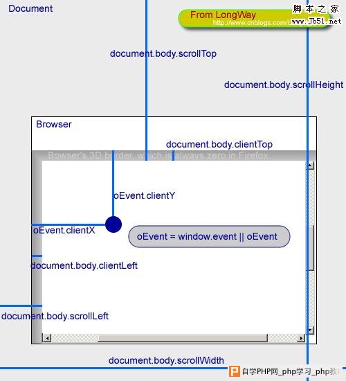 图示offsetWidth、clientWidth、scrollWidth、scrollTop、scrollLeft等属性,对于一些页面的控制很有帮助。