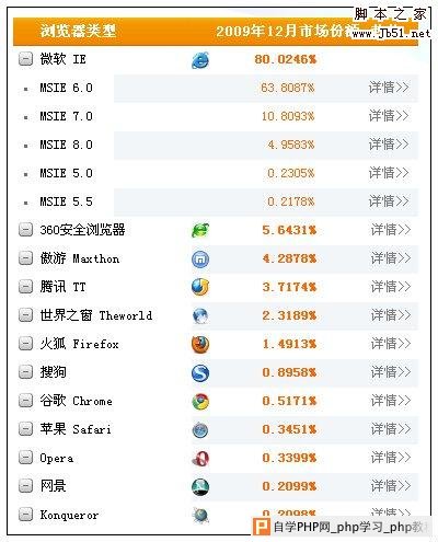 3、安装在主机空间软件类的在线客服系统。为免广告嫌疑,可以自己去搜索引擎搜索一下。 下面介绍优化客服系统,一起来提高自己网站的转化率! 1、网站客服好帮手——常见问题(FAQ)。 FAQ是电子商务网站的必备武器,FAQ可以有效节约网站客服资源,在增加网站信任度的同时,用户也可以更快得找到自己需要的答案。有了FAQ,客服就有更多的时间去处理其他疑难问题,从而提高网站效率和转化率。 2、用户多种选择。 考虑到用户的多样性需求,一般的企业站都把IM在线代码加在线客服系统(软件)一起使用!方便用户咨询,提高转化率。 另外注意的是,目前国内几乎到了人手一Q的程度,如果网站没QQ客服,无疑是网站客服的一种缺失。 3、测试各种浏览器的兼容性。 由于某种程序冲突或者缺陷,会造成某些浏览器不兼容,或者导致网页错位、假死,这些都要站长亲自去测试。 连基本的正常显示都没解决好,用户就更加不会去咨询了,最终还是影响转化率。 目前国内流行的浏览器,请参考下图,截图数据来源于2009年12月CNZZ互联网分析报告。