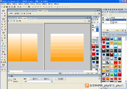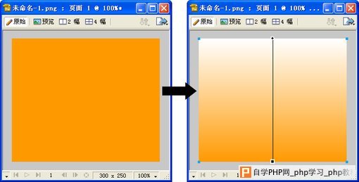 1、启动Fireworks,新建一个画布,尺寸任意。 2、使用【矩形】工具,在画布中绘制一个和画布同意尺寸的矩形,并且填充线性渐变色,颜色为白色过度到任意色彩,效果如图4-132所示。