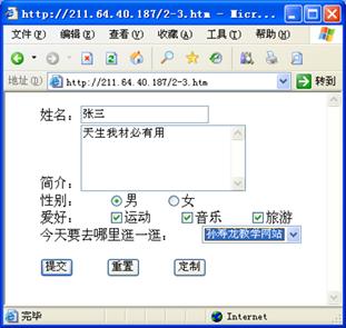 其中,第一个文本框名为zh,第二个名为mm;第一个按钮是提交表单型按钮,第二个是重置表单型按钮。