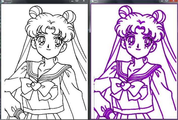 测试代码与运行结果如下: import cv2 as cv # help(cv.drawContours) src = cv.imread("./both.jpeg") gray = cv.cvtColor(src, cv.COLOR_BGR2GRAY) ret, thresh = cv.threshold(gray, 150, 255, 0) cv.imshow("thresh",thresh) # 寻找轮廓 contours, hierarchy = cv.findContours(thresh, cv.RETR_TREE, cv.CHAIN_APPROX_SIMPLE) # print(contours) # print(hierarchy) # 绘制轮廓 cv.drawContours(src,contours,-1,(200,0,150),2) cv.imshow('src',src) cv.waitKey(0) 到此这篇关于Python OpenCV 基于图像边缘提取的轮廓发现函数的文章就介绍到这了,更多相关OpenCV 边缘提取轮廓 内容请搜索自学php网以前的文章或继续浏览下面的相关文章希望大家以后多多支持自学php网! 以上就是关于Python OpenCV 基于图像边缘提取的轮廓发现函数全部内容,感谢大家支持自学php网。 |