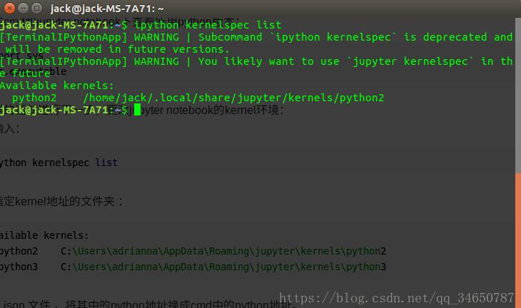 这个问题让我查了许多天才解决,为了避免后面的人重复走弯路,记录下来。 问题描述:我在ubuntu 下编译安装了caffe ,在命令行模式下可以import caffe ,但是在jupyter notebook 中无法import caffe,同样的 我安装的pytorch 也遇到了类似的问题。 解决方案:首先在打开终端,输入python , 然后import sys,最后执行sys.executable 结果如下图,路径是:/home/jack/anaconda2/bin/python 第二 在终端 输入 jupyter notebook 后,新建一个ipynb 文件,同样是 import sys,sys.executable,结果输出是:/usr/bin/python 如下图: 也就是说终端的路径 与jupyter notebook 的路径不一致,需要在终端中输入: ipython kernelspec list 结果如下 此时需要进入:/home/jack/.local/share/jupyter/kernels/python2/ 路径在修改 kernel.json 文件将 { "display_name": "Python 2", "language": "python", "argv": [ "/usr/bin/python", % 修改为 :/home/jack/anaconda2/bin/python "-m", "ipykernel_launcher", "-f", "{connection_file}" ] } 文件中的 /usr/bin/python 修改 为/home/jack/anaconda2/bin/python,然后保存重启即可。 补充:Mac在终端正常导入的模块,而在jupyter notebook无法导入的问题 1、在网上搜索了很久,找到了问题的关键,如下:在jupyter中新建文件输入如下代码,查看目前的编译路径: 此时发现 jupyter模式下使用的python编译路径与其他模式下的python编译路径是不一样的,这就是为什么无法导入已经安装好的包的原因。 2、出现上述情况的原因在博客中看到的很多把虚拟环境添加jupyter中的操作流程如下: 1、在base环境中安装ipykernel pip install ipykernel 2、创建虚拟环境、同时添加ipykernel conda create -n env_name python=3.5 ipykernel 3、切换到虚拟环境 conda activate env_name 4、将环境写入notebook的ipykernel中 python -m ipykernel install --user --name env_name --display-name "在jupyter中显示的环境名称" 上面的安装过程确实可以实现将虚拟环境加入到juyter中,但是由于是在base中安装的ipykernel,或者忘记激活虚拟环境,或者由于实在base中安装的ipykernel,导致无法在激活的虚拟环境中使用 -m ipykernel,很多人直接在base中执行命令4,导致加入到jupyter的虚拟环境的python编译器使用的是base的,因此导致了上述问题。 解决办法直接切换至虚拟环境(命令如上),安装ipykernel后,再执行命令4,结果如图所示,可以看到编译路径已经切换至虚拟环境所在路径: 以上为个人经验,希望能给大家一个参考,也希望大家多多支持自学php网。如有错误或未考虑完全的地方,望不吝赐教。 以上就是关于终端能到import模块 解决jupyter notebook无法导入的问题全部内容,感谢大家支持自学php网。 |