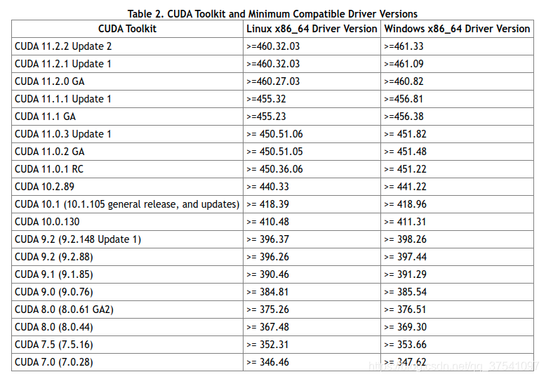 提示,如果想要保留之前的PyTorch1.6或1.7的环境,请不要卸载CUDA环境,可以通过Anaconda管理不同的环境,互不影响。但是需要注意你的NVIDIA驱动版本是否匹配。 在这里能够看到官方给的对应CUDA版本所需使用驱动版本。 通过上表可以发现,如果要使用CUDA11.1,那么需要将显卡的驱动更新至455.23或以上(Linux x86_64环境)。由于我之前的驱动版本是440.33.01,那么肯定不满足,所以需要更新下显卡的驱动。通过以下指令可以查看你电脑上的驱动版本: nvidia-smi 如果你的驱动版本是满足的,那么可以直接跳到创建Pytorch1.8虚拟环境章节。 更新驱动卸载旧驱动我之前安装的是NVIDIA-440的版本,找到之前下载的安装程序,然后打开终端通过以下指令进行卸载: sh ./NVIDIA-Linux-x86_64-440.33.01.run --uninstall 安装新驱动 1)下载驱动,直接去NVIDIA官网下载:https://www.nvidia.cn/Download/index.aspx?lang=cn 根据你的GPU型号以及操作信息选择对应的驱动,注意CUDA Toolkit11版的当前可选的只有11.0和11.2,而我们要装的是11.1所以选择11.2即可。 2)关闭Xserver服务 (如果没有安装桌面系统可以跳过) systemctl status gdm.service 显示结果:
