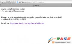 模板文件: 代码如下 !DOCTYPE html PUBLIC -//W3C//DTD HTML 4.01 Transitional//EN http://www.w3.org/TR/html4/loose.dtd html head meta http-equiv=Content-Type content=text/ html ; charset=UTF-8 title{$web_tile}/title /head body {$arti..[详情]