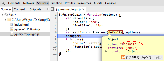 利用这一点,我们可以在插件里定义一个保存插件参数默认值的对象,同时将接收来的参数对象合并到默认对象上,最后就实现了用户指定了值的参数使用指定的值,未指定的参数使用插件默认值。