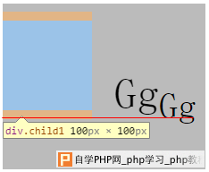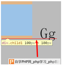 可以看到,big子元素撑开了line box,而child1的margin-top外边界紧贴在line box的顶端。 2、bottom 将子元素盒子的底部和其所在的line box底部对齐 和top类似,由于big用于撑开line box,可以不必修改其vertical-align的值,仅修改child1为vertical-align:bottom,效果:
