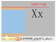 3、text-top 将盒子的顶端(margin-top边界)与父盒子的文本区域顶端对齐 审查盒子看到margin-top的顶端。