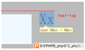并不是很直观,给它加上一个transform: translate(0, 50px);【相对下移50px】,它又移到那个熟悉的位置了。 8、length 升高(正值)或降低(负值)子元素盒子。值为升高/降低的距离,如果为0,和vertical-align:baseline一样。 以我们最常用的px作为单位,设定vertical-align:50px,效果就和上面百分比为25%(200px*25%=50px)一样了,不做例子了。 五、vertical-align基于line box的不同取值 当vertical-align设置为top和bottom时,其就不是按照baseline进行定位了,而是根据line box进行定位。子元素盒子的顶部和底部也就是其上下margin外边界。 1、top 将子元素盒子的顶部和其所在的line box顶部对齐 由于vertical-align:top将会让子元素盒子顶部与line box顶部对齐,而如果line box高度小于子元素高度,line box将会被撑开。我们先用一个高度较高的元素撑开line box,然后看看效果: