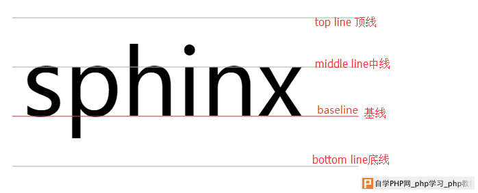 基线甚至衍生出了: 1.“alphabetic” baseline: “字母”基线 – 英文 2.“hanging” baseline: “悬挂”基线 – 印度文 3.“ideographic” baseline: “表意”基线 – 中文