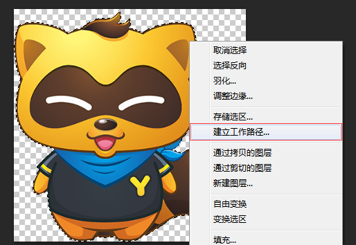使用 PS 导出路径估计靠手工能画出来,也没了大半条命。好,轮到工具上场,看看我们的原图在 PS 下长什么样子(支持透明通道的 PNG、GIF 为佳): 好,选中选框工具,按下 CTRL 选中图层, 再选择建立工作路径: