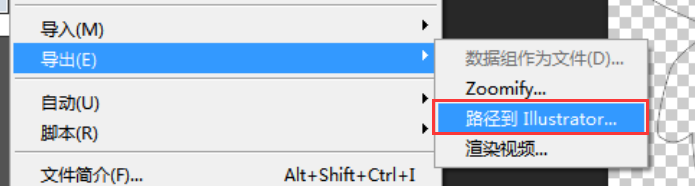 好,到了 PS 中的最后一步,点击文件选项,导出路径到 illustrator ,看图,照着操作就好: