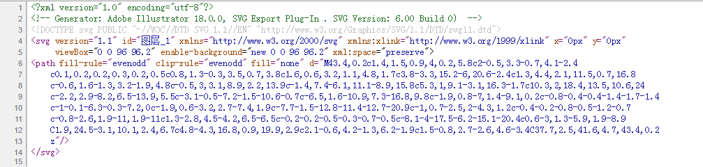 可能你看到的是一片空白,别慌,使用选择工具选一个矩形,就能选中路径啦。 如果你是 PS 钢笔工具小能手,还可以继续对路径进行修改,直到自己满意为止。 OK,接下来就是调整画布大小,最好是路径左上角和画布左上角对齐,然后选中存储为 SVG 文件。 好,其实 AI 也没做什么,路径是使用 PS 生成的,为什么不直接用 PS 生成 *.svg 文件呢?因为我用的版本 PS 还没支持直接存储为 SVG 格式。然后其实也可以直接在 AI 上绘制路径,这个就看设计师或者你对哪个工具更熟悉了。 获取 SVG 的 path 路径OK,最后把刚刚保存的 *.svg 路径的文件用浏览器打开,一片空白是正常的,右键查看网页源代码: 大功告成,这里面, 路径就是我们需要的路径了! 好,把我们要的 <path> 整个拿出来,运用上一篇文章的线条动画知识,给它赋予简单的动画效果就好: 使用 javascript 计算 path 路径长度还有一个问题,线条动画需要知道整个 path 路径的长度,简单的线条我们还可以利用加减法算出整个图形的长度。那么复杂路径的长度怎么计算? 利用一段简单的 js 可以完成: <svg>