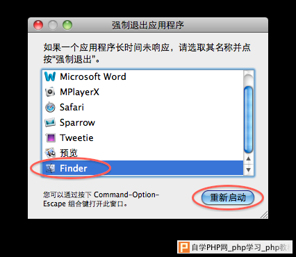 刚开始使用Mac OS设备的亲们表示很尴尬,关闭了窗口后台的程序依旧在运行怎么办呢?就好比酷狗音乐,关掉了窗口依旧在放歌。Mac系统可找不到任务栏啊!到底如何强制关闭后台的运行程序呢? 其实很简单,Windows有任务管理器可以强制关闭任何软件和进程,组合键实是“Ctrl+Alt+Delete”,同样的 Mac OS系统也有类似任务管理器的功能,打开任务管理器的组合键是“Command+Option+Esc”打开“强制退出应用程序”功能,选中需要退出的程序,然后强制退出即可。 图中所示Finder文件管理器是不能关闭的,只能重启。