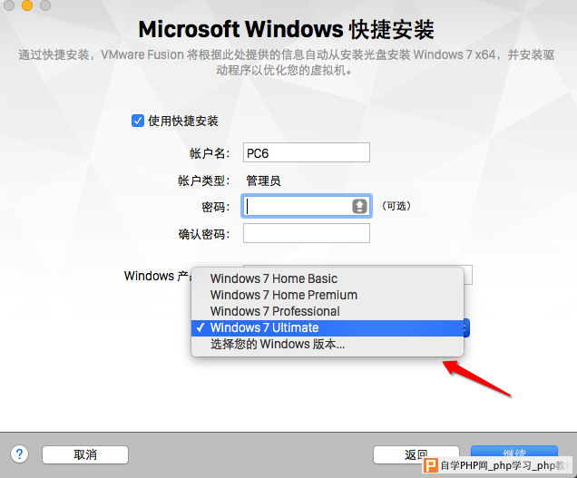 Vmware Fusion 7 Mac版是一款在Mac OS X系统下非常好用的虚拟机软件,VMware Fusion 今年发布了第七个版本,除了支持 OS X Yosemite 和 Windows 8.1 系统外,VMware Fusion 7还针对最新的 Haswell 处理器 Mac 进行了优化。需要安装OS X和Windows双系统的同学不妨可以试试这一款软件,下面PC6小编为大家带来Vmware Fusion 7 Mac版安装Windows 7虚拟机的教程。 准备工作: 1、从www.jb51.net 脚本之家下载并安装Vmware Fusion 7 Mac版 2、Windows 7的系统安装镜像文件 下面开始正式安装步骤: 1、启动Vmware Fusion 7 2、如果没有安装任何虚拟机,会弹出“创建虚拟机”界面,我们可以选择从光盘或映像文件中安装,也可以导入同一个网络中的 PC。当然快捷、最简单的方式依然是选择下载的 Windows 镜像 3、在创建新的虚拟机界面,可以点击下方的使用其他光盘映像,找到并选择下载好的 Windows 安装盘文件。 4、载入 Windows 安装文件后,可以选择快捷安装,唯一需要输入的就是账户名。密码以及 Windows 产品密匙都可以选择不填。选择要安装的Windows版本,确定好用户名后点击继续。 5、VMware Fusion 和 Parallels Desktop 都支持三种 OS X 与 Windows 的集成方式,最简单的就是在独立的窗口中运行 Windows ,也就是图片中的更加独立,以及将两个系统的功能和应用相互连接,也就是图片中的更加无缝。Parallels Desktop 中叫做融合模式。最后,就是让 Windows 占据整个屏幕。我们可以根据自己的需要以及对 OS X 系统的熟悉程度选择集成级别,如果更熟悉 OS X ,可以选择更加独立,如果更熟悉 Windows ,可以选择更加无缝。 6、当虚拟机配置完成后,VMware Fusion 7 会给出总结,包括客户机操作系统、账户名、内存等信息,如果确认无误可以点击完成并开始 Windows 8.1 虚拟机安装。VMware Fusion 7 的 Windows 系统安装也不需要任何操作,完成上面的配置后,VMware Fusion 会自动开始安装。我们只需要等待即可。 7、下面就进入到熟悉的Windows 7的安装界面,耐心等待即可。 8、安装过程中,会重启两次,继续等待即可。 9、如果安装好Windows系统后出现分辨率无法设置、网卡驱动异常等问题,建议重新安装Vmware Tools,具体操作方法详见小编之前的教程(戳我查看教程)。 |