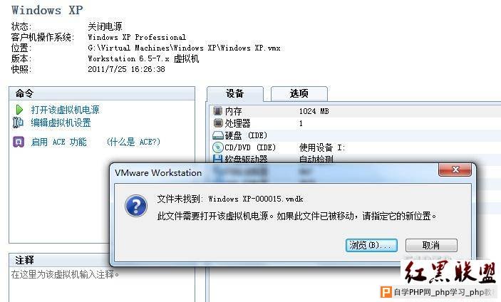 早上想开VMware Workstation中的虚拟XP系统测试个东西,点击打开虚拟机电源时跳出如下对话框:这才想起上次清理硬盘,删除了一些非常大的文件,把这台虚拟机除Windows XP.vmdk之外其他的..[详情]