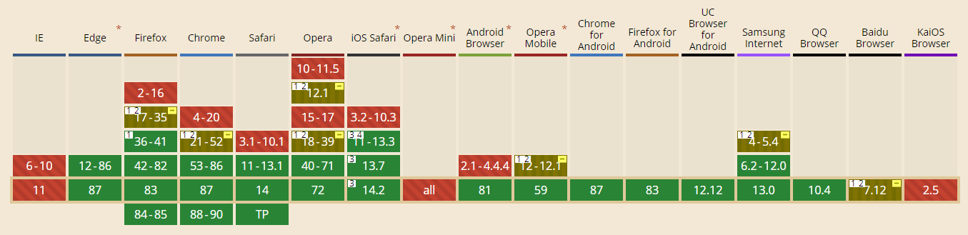 从caniuse的兼容性来看,整体兼容性一般,IE系列浏览器完全不支持,iOS不仅需要iOS 11以上的版本,而且在APP的嵌入式页面也无法通过api进行调用。