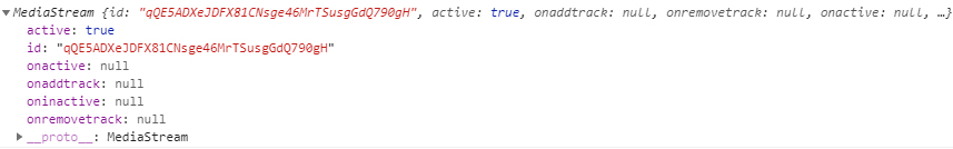 id是MediaStream对象的唯一标识符,active是当前内容流是否处于活动状态,下面几个字段则是谷歌浏览器提供的钩子。