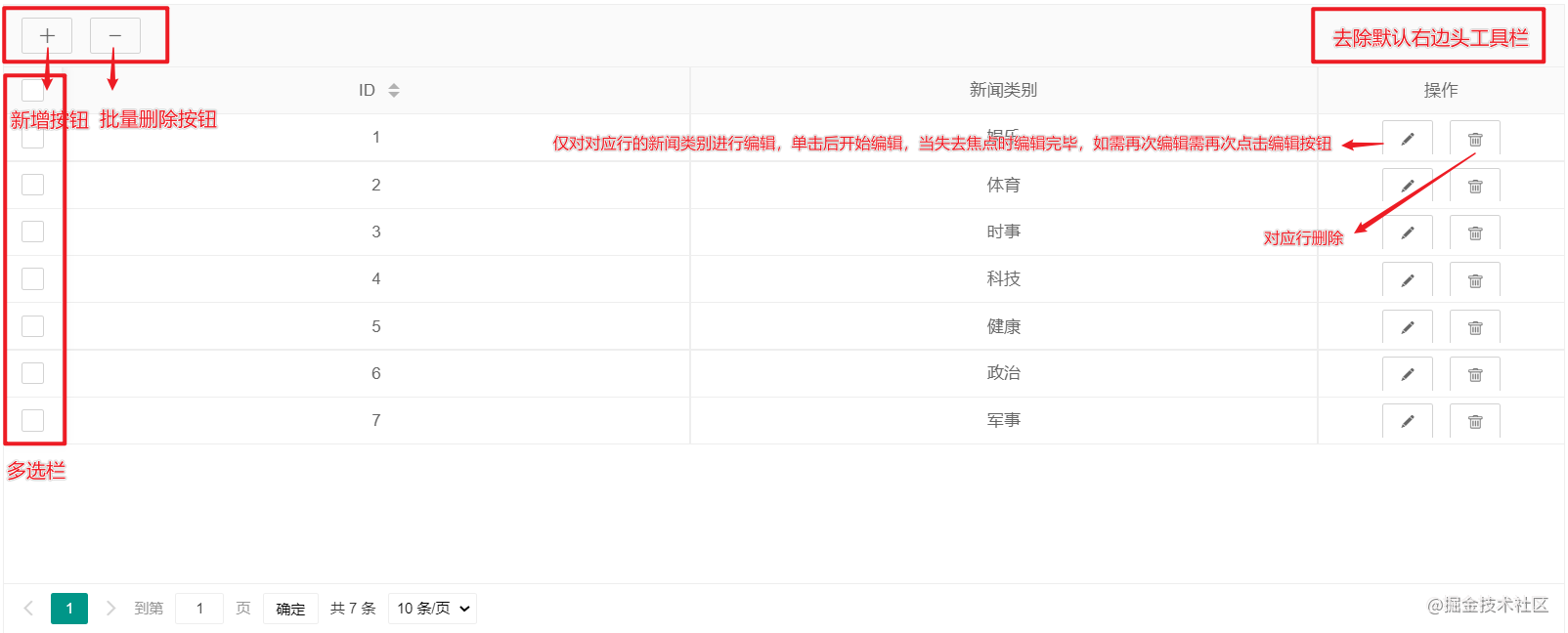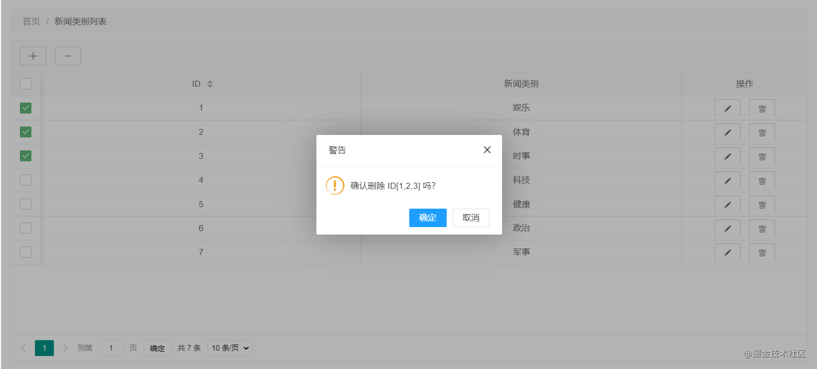 行删除很简单,就是通过点击所在行拿到删除对象的 id ,向后端传递即可完成对应行的数据删除。