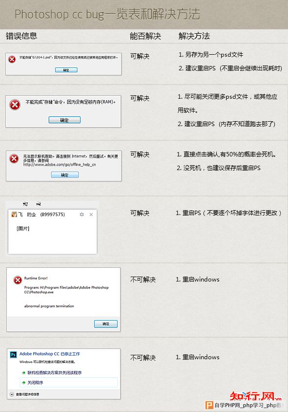除了关闭后台存储来降低软件崩溃的问题,这里笔者还根据工作经验,汇总了一些PS CC的常见问题。部分问题可以解决,但仍有部分问题只能留待下个版本的更新优化。