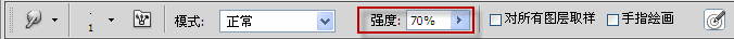 属性栏的设置前面几个参数都比较熟悉,不再讲解。主要是后面的一个“手指绘画”参数的使用。