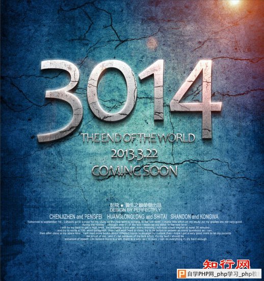 九、之后为底下的小文字做同样的处理,细节可以由自己调整,效果如下图。 OK,现在整体的效果已经有了,但是貌似还是不够给力,接下来,我们再为这些文字添加更多的效果。