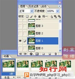 (4)、复制后点动画栏右上方的小三角---将帧拼合到图层,这样每个帧都有对应的图层: