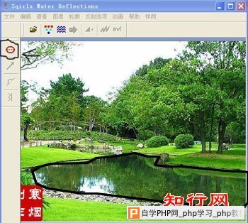 (1)首先在软件中打开图片,点击红色按扭,选取制造水波流动的区域,选取好后右击鼠标: