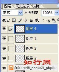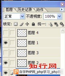 八、我们打算第一帧为有灯光,第二帧为无灯光。首先在动画栏中点选第一帧---在图层栏中把所有的图层的眼睛都打开---再在动画栏中点选第二帧----在图层栏中把图层中的图层3和图层4的眼睛关掉。